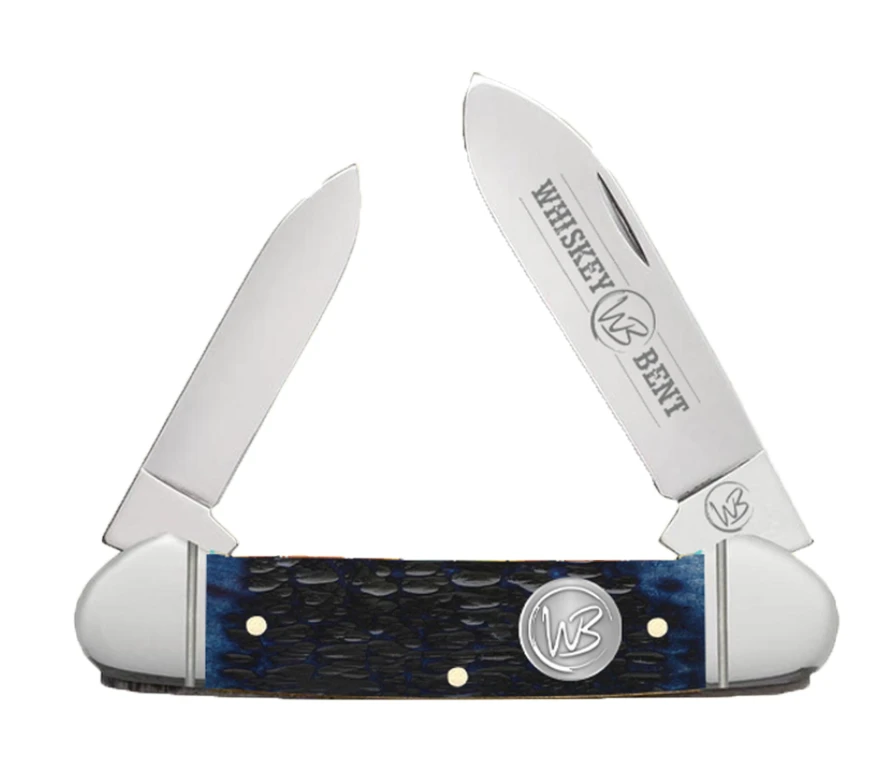 The Blueberry Canoe from Whiskey Bent Knives is a traditional pocket knife. This knife is a symmetrical 2 bladed knife that features a spear blade and pen blade. The blades are made with 440 steel.