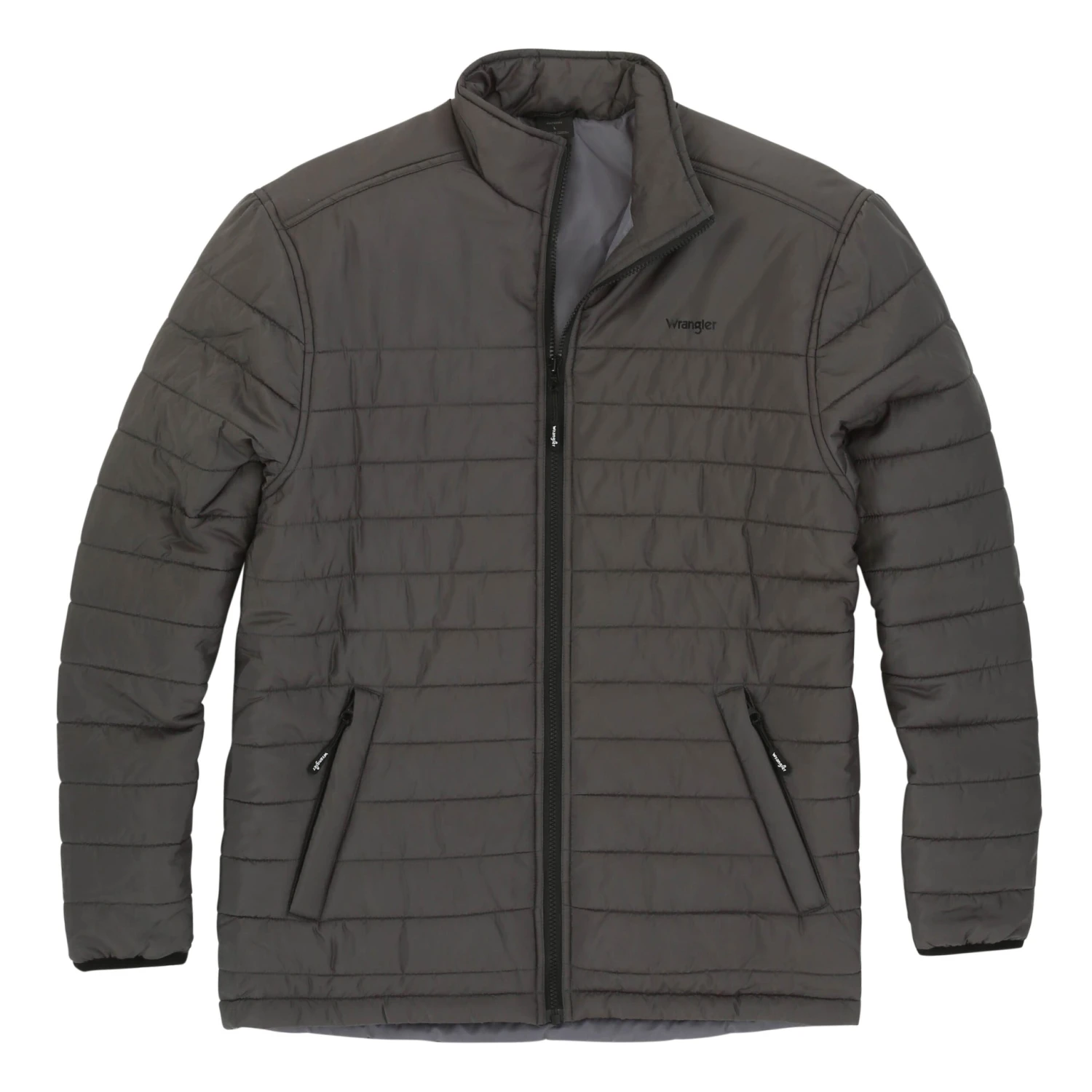This men’s winter coat from Wrangle is all grey and has a quilted like stitch design to it! There is a full zip in the front and zip hand pockets!